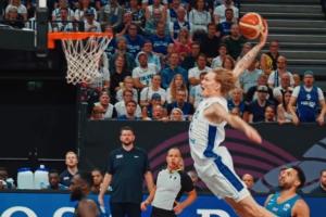 第四节比赛中,芬兰18岁小将米卡-穆里宁贡献一记帅气扣篮——当时穆里宁在防守回合帽掉对手,随后马上快下,接应队友的长传球,腾空来了一个舒展的滑翔单臂暴扣。