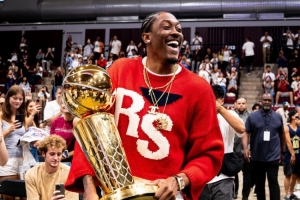 体育资讯9月22日讯 雷霆球员杰伦-威廉姆斯带着总冠军奖杯回到了母校圣克拉拉大学,在那他得到了全校师生的热烈欢迎。