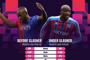 据统计,自2024年2月格拉斯纳执教水晶宫以来,马特塔在英超打进32球,此数据在同期仅次于哈兰德43球、萨拉赫34球、伊萨克34球。