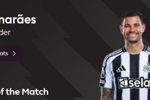 本场比赛纽卡球员吉马良斯在第90分钟打进绝杀,赛后当选英超官方球迷票选全场最佳球员。