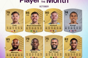 体育资讯10月30日讯 英超官方公布了10月最佳球员候选8人名单,哈兰德领衔: